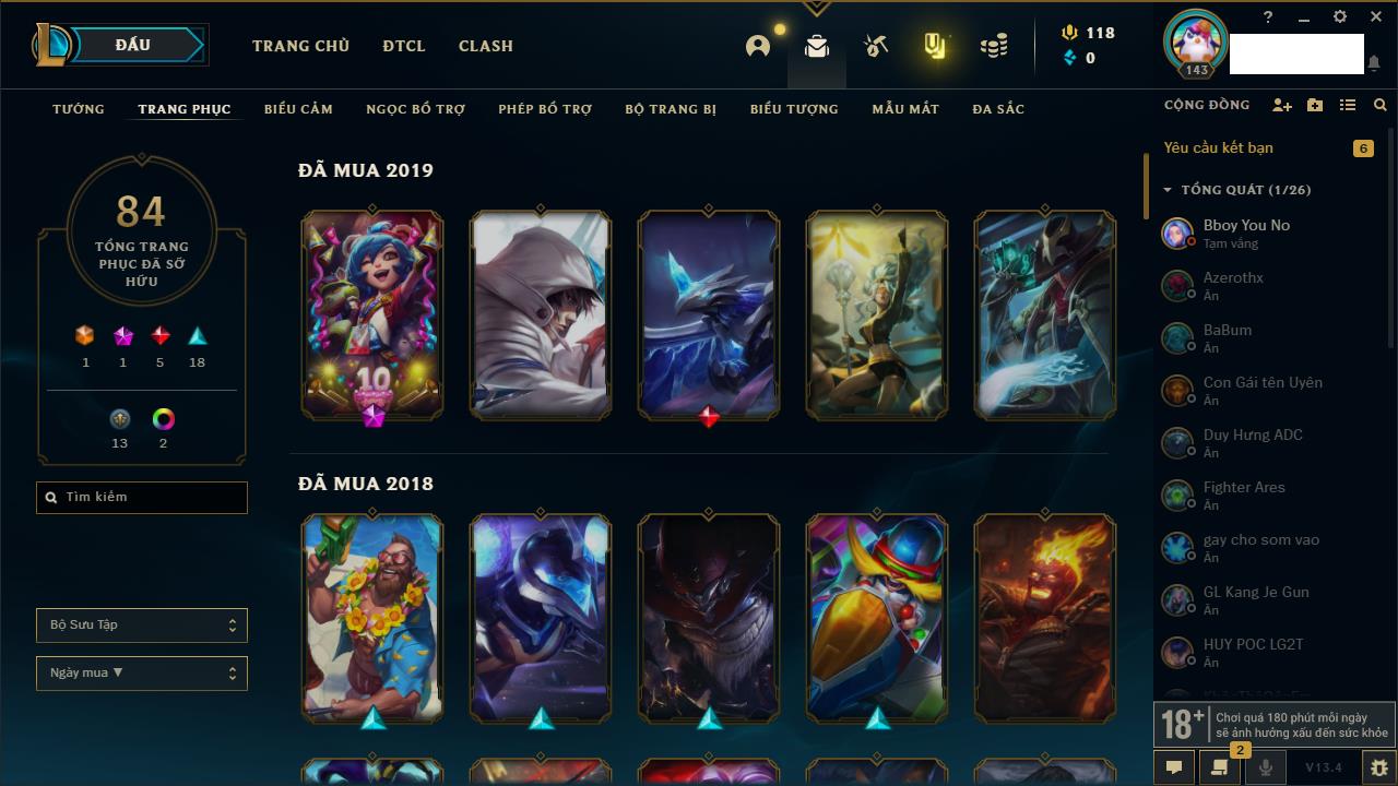 Rank Đơn: Bạch Kim IIKhung: Bạch kimTướng: 171 - Còn 316137 THXTrang Phục: 89Rank ĐTCL: Bạch Kim IIILinh Thú: 94