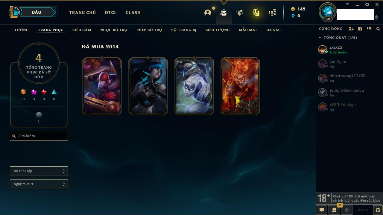 Rank Đơn: Chưa rank mùa nàoKhung: Chưa có khungTướng: 3 - Còn 6810 THXTrang Phục: 0Rank ĐTCL: Chưa RankLinh Thú: 41