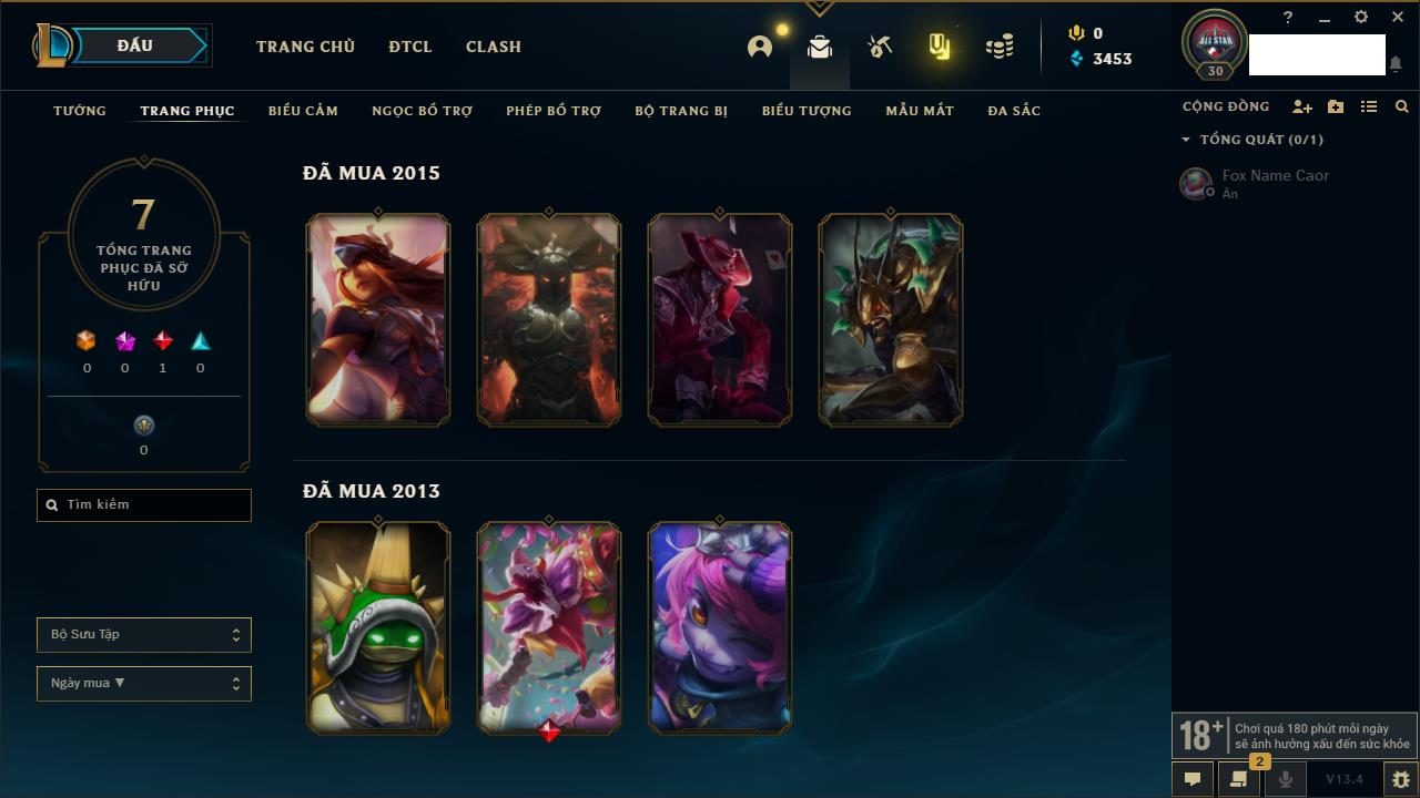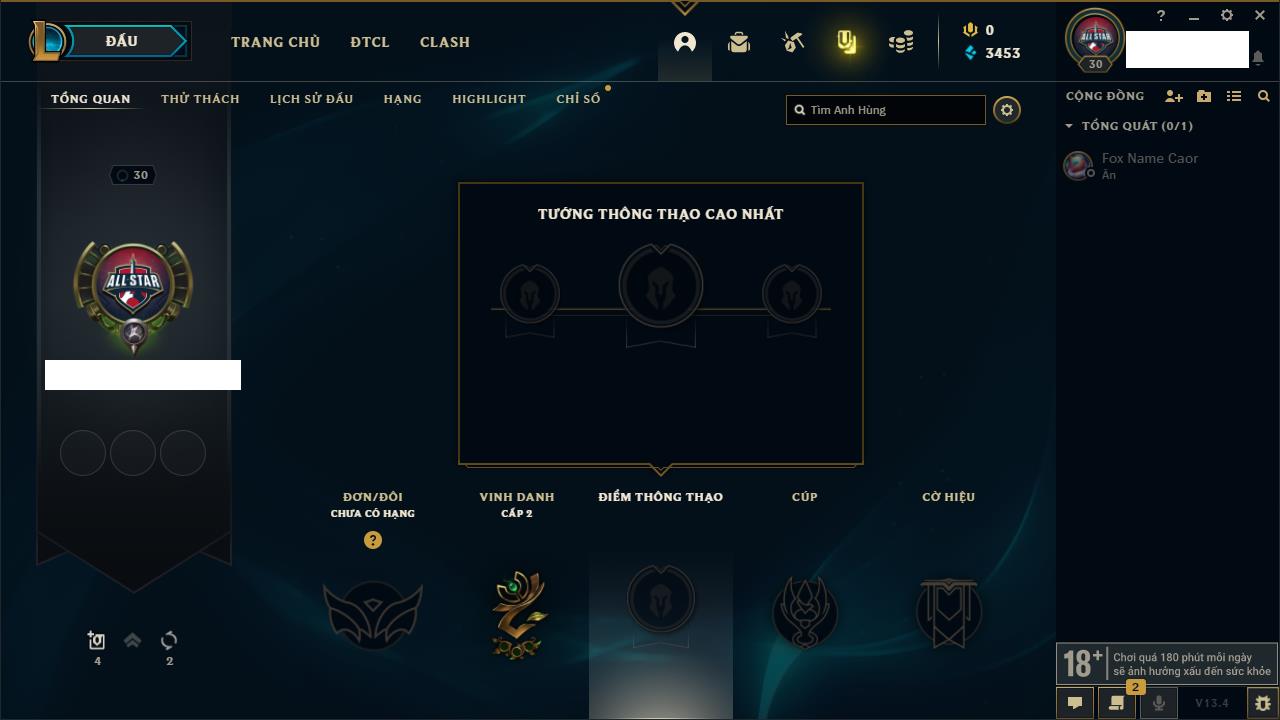 Rank Đơn: Sắt IIKhung: Chưa có khungTướng: 41 - Còn 2424 THXTrang Phục: 24Rank ĐTCL: Chưa RankLinh Thú: 154