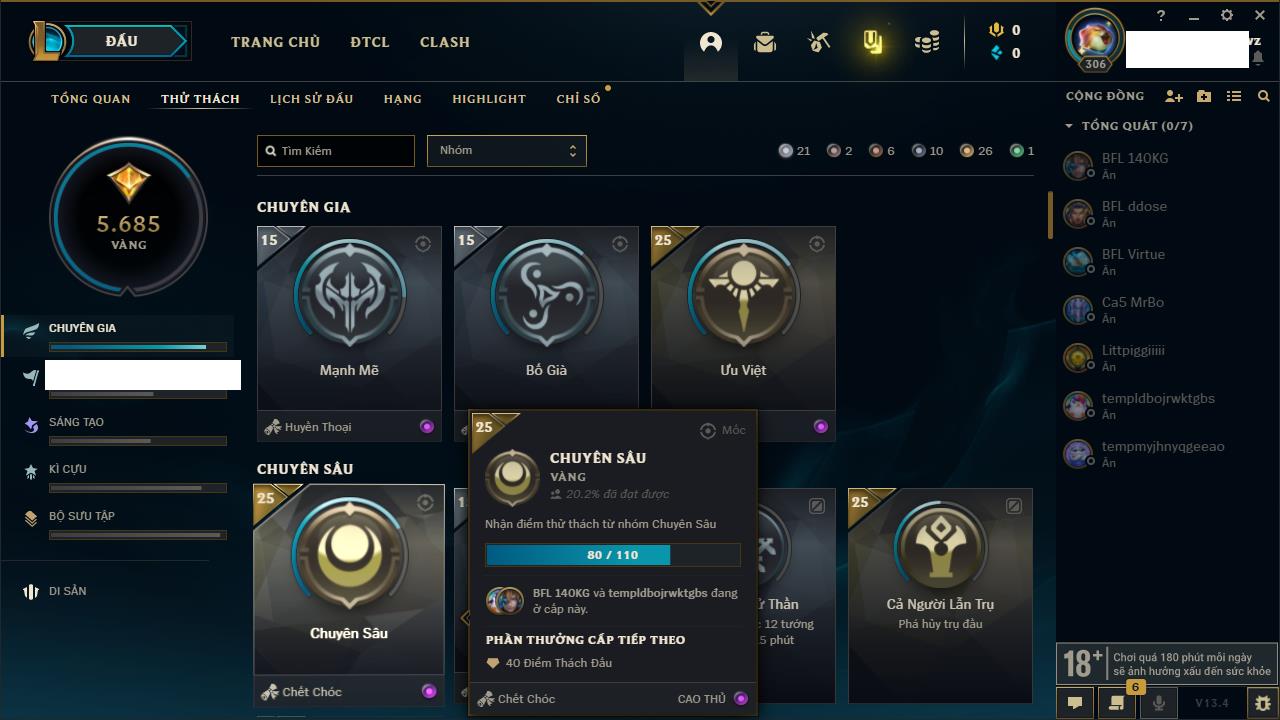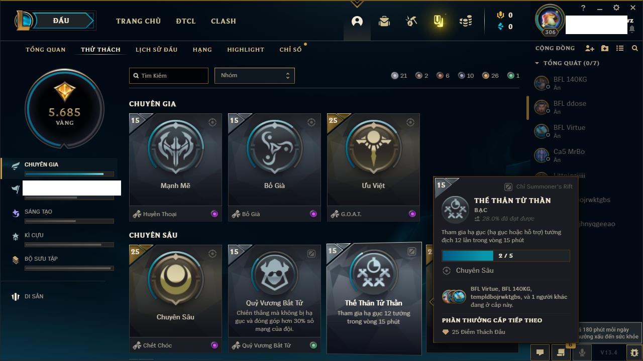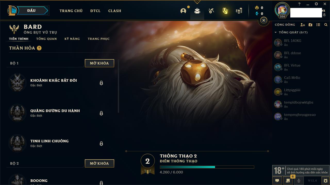 Rank Đơn: Sắt IVKhung: SắtTướng: 171 - Còn 231744 THXTrang Phục: 376Rank ĐTCL: Bạch Kim IILinh Thú: 120