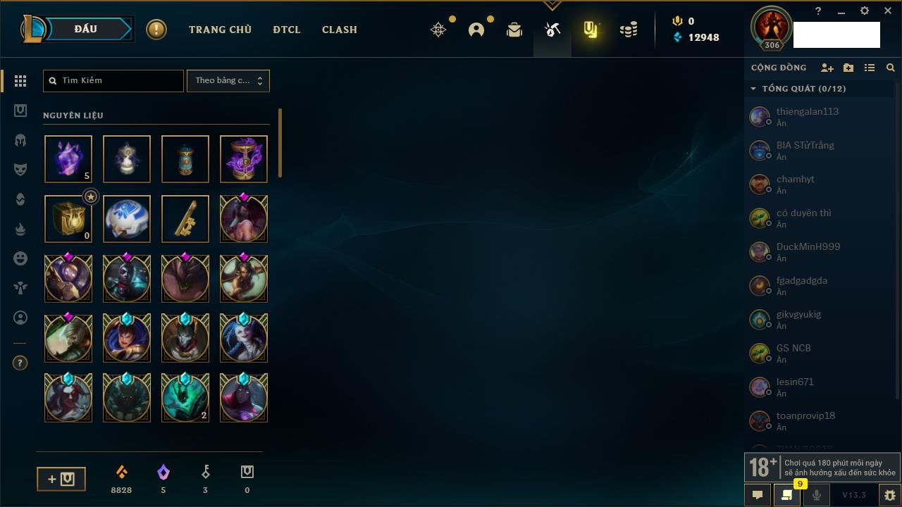 Rank Đơn: Chưa Rank Khung: Chưa có khung Tướng: 157 - Còn 51905 THX Trang Phục: 3 Rank ĐTCL: Chưa Rank Linh Thú: 175