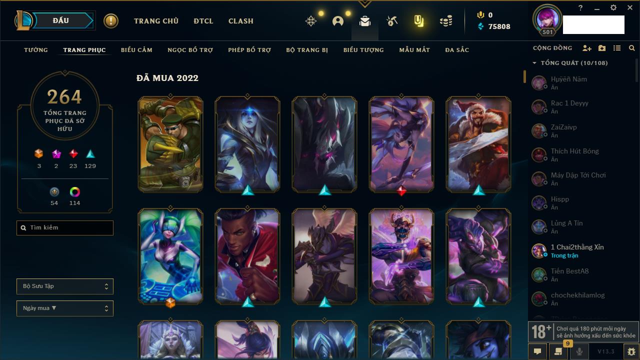 Rank Đơn: Đồng IKhung: ĐồngTướng: 168 - Còn 11447 THXTrang Phục: 245Rank ĐTCL: Chưa RankLinh Thú: 53