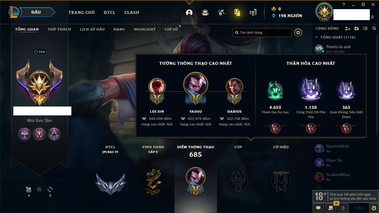 - Cấp 527 - 180,925 IP - Yasuo 634,686 Thông Thạo
