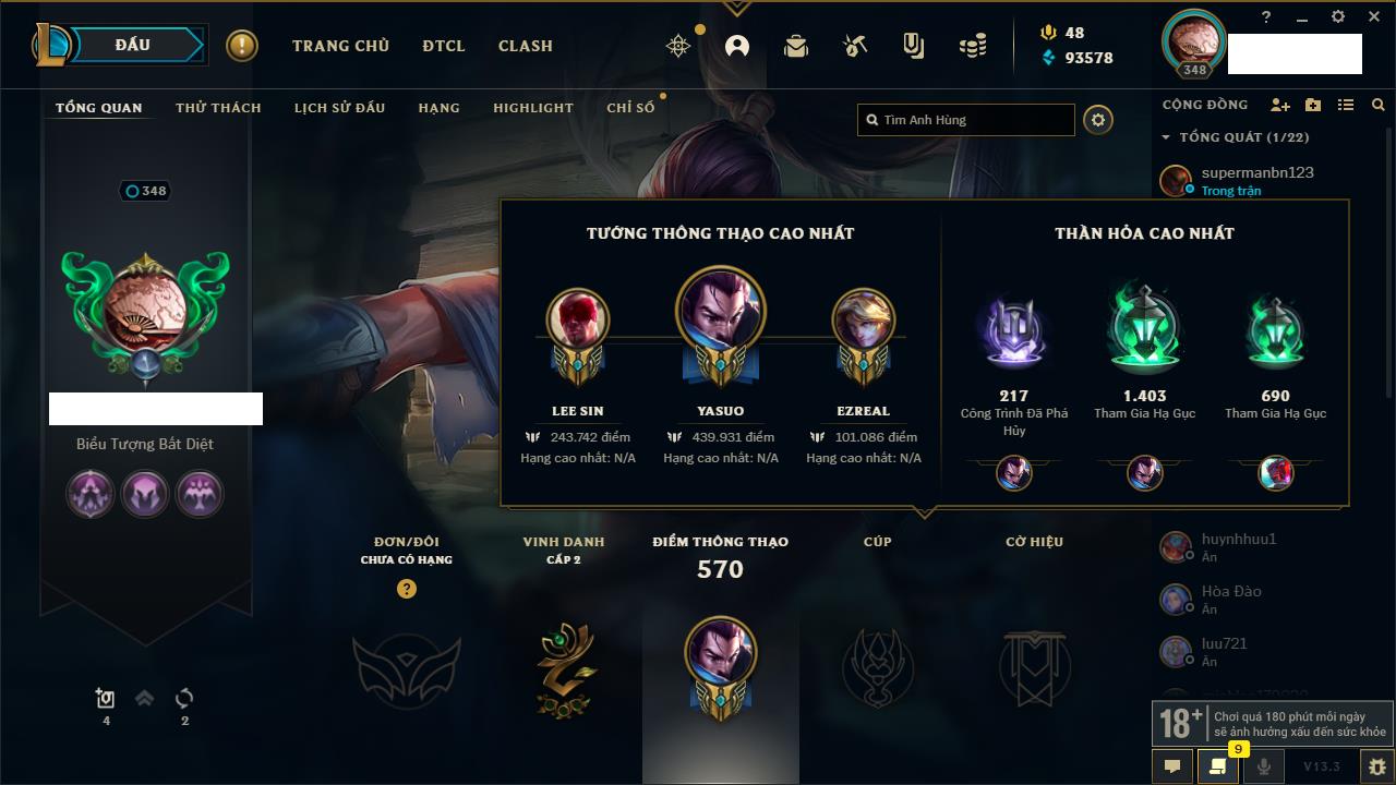 - Cấp 527 - 180,925 IP - Yasuo 634,686 Thông Thạo