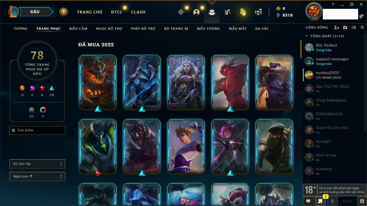 Rank Đơn: Chưa rank mùa nàoKhung: Chưa có khungTướng: 3 - Còn 32650 THXTrang Phục: 0Rank ĐTCL: Bạch Kim IVLinh Thú: 66