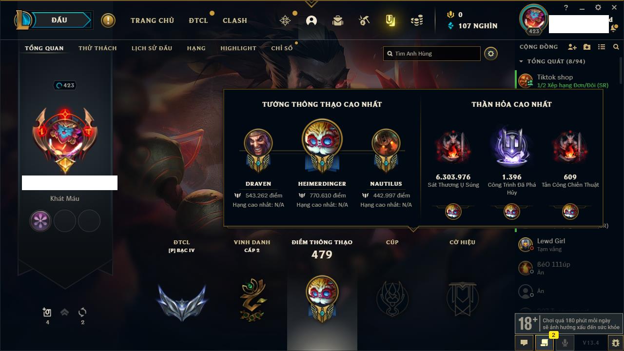 Rank Đơn: Chưa rank mùa nàoKhung: Chưa có khungTướng: 0 - Còn 2000 THXTrang Phục: 0Rank ĐTCL: Chưa RankLinh Thú: 14