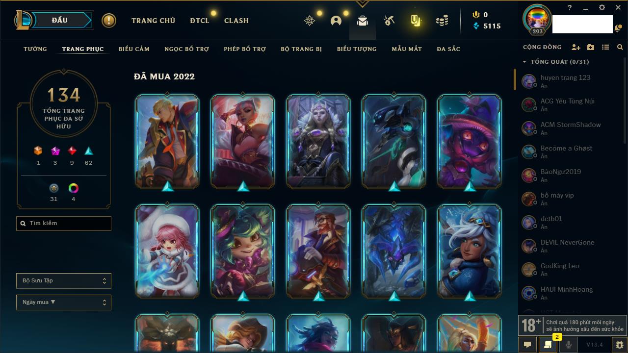 Rank Đơn: Chưa RankKhung: Chưa có khungTướng: 163 - Còn 157403 THXTrang Phục: 149Rank ĐTCL: Chưa RankLinh Thú: 122