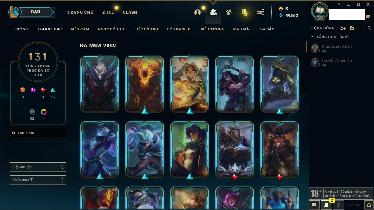 Rank Đơn: Chưa RankKhung: Chưa có khungTướng: 162 - Còn 23234 THXTrang Phục: 150Rank ĐTCL: Chưa RankLinh Thú: 42