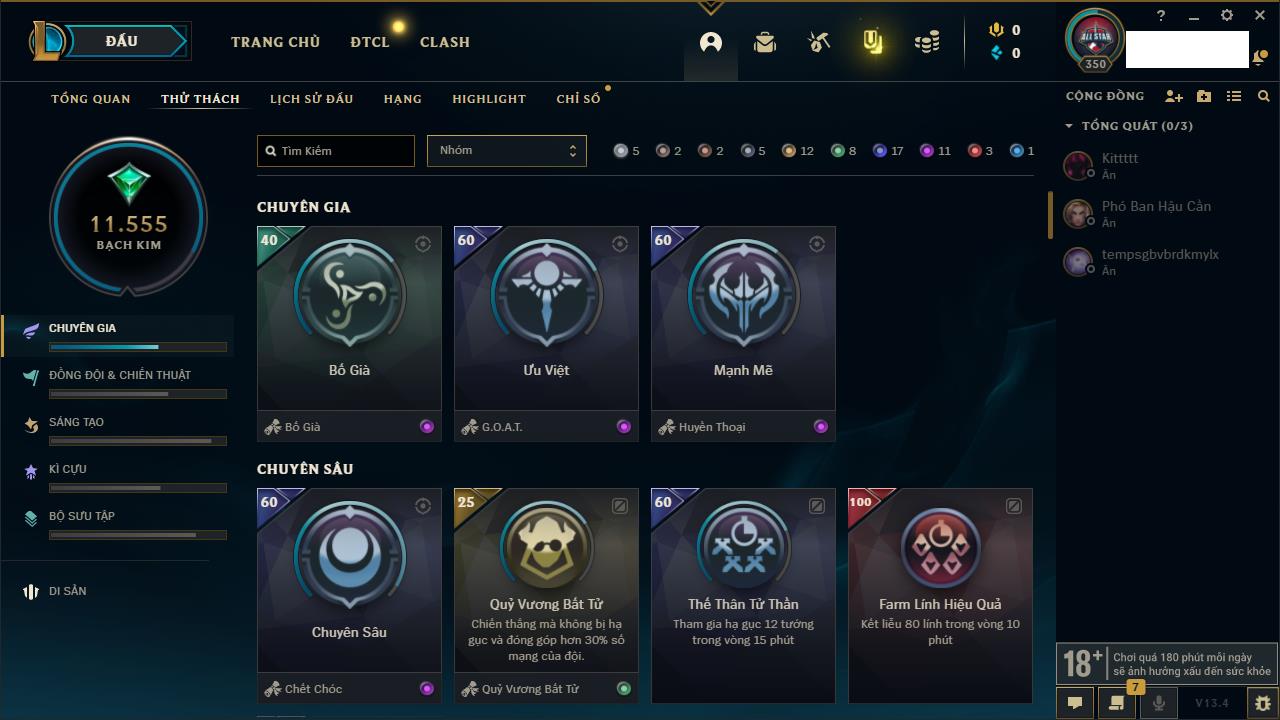 Rank Đơn: Vàng IVKhung: BạcTướng: 171 - Còn 426239 THXTrang Phục: 162Rank ĐTCL: Chưa RankLinh Thú: 33