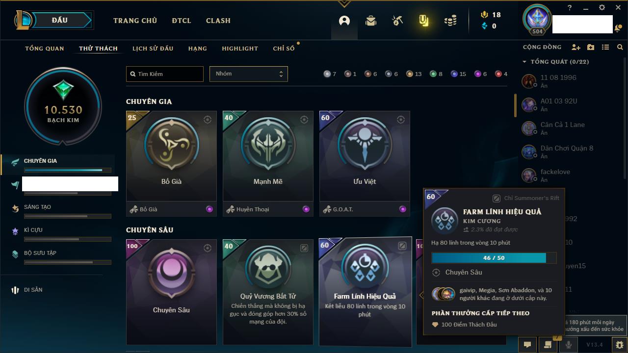 Rank Đơn: Đồng IIIKhung: ĐồngTướng: 171 - Còn 54778 THXTrang Phục: 96Rank ĐTCL: Bạch Kim IIILinh Thú: 140