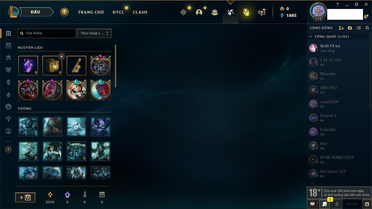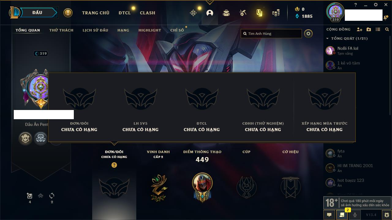Rank Đơn: Chưa rank mùa nàoKhung: Chưa có khungTướng: 0 - Còn 15550 THXTrang Phục: 0Rank ĐTCL: Chưa rank mùa nàoLinh Thú: 18