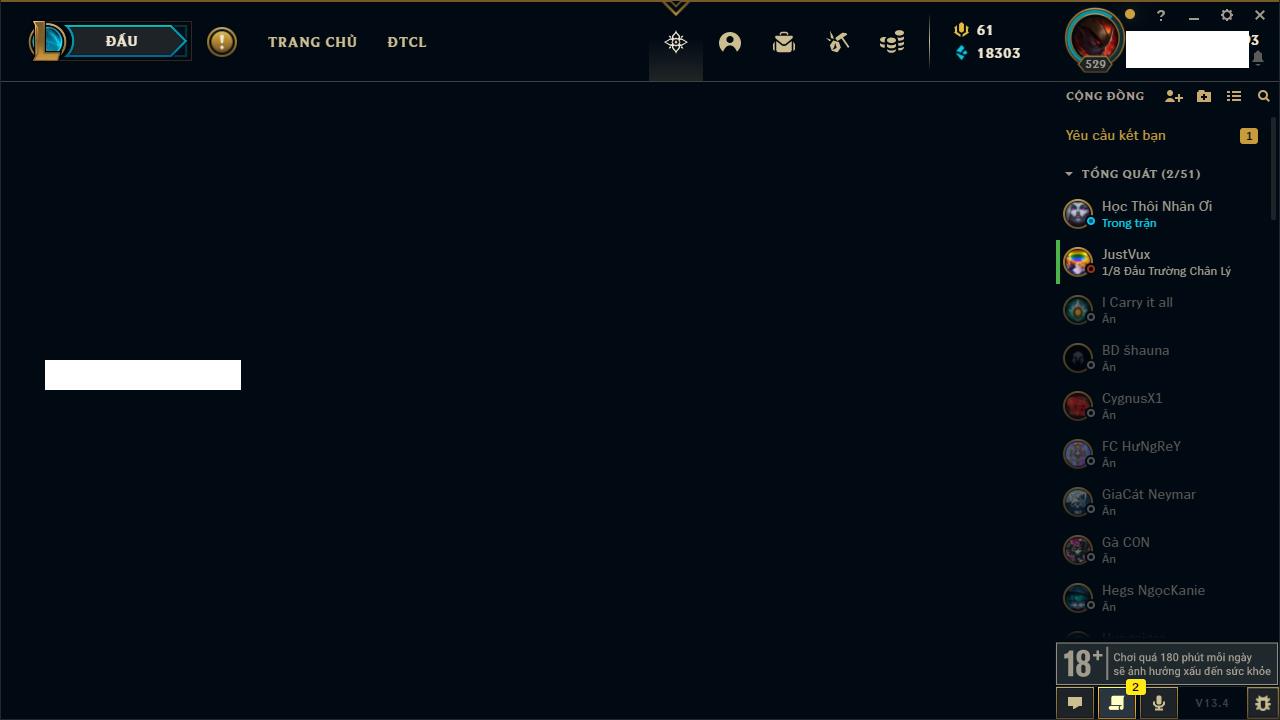 Rank Đơn: Bạch Kim IVKhung: Bạch kimTướng: 171 - Còn 218930 THXTrang Phục: 162Rank ĐTCL: Chưa RankLinh Thú: 118