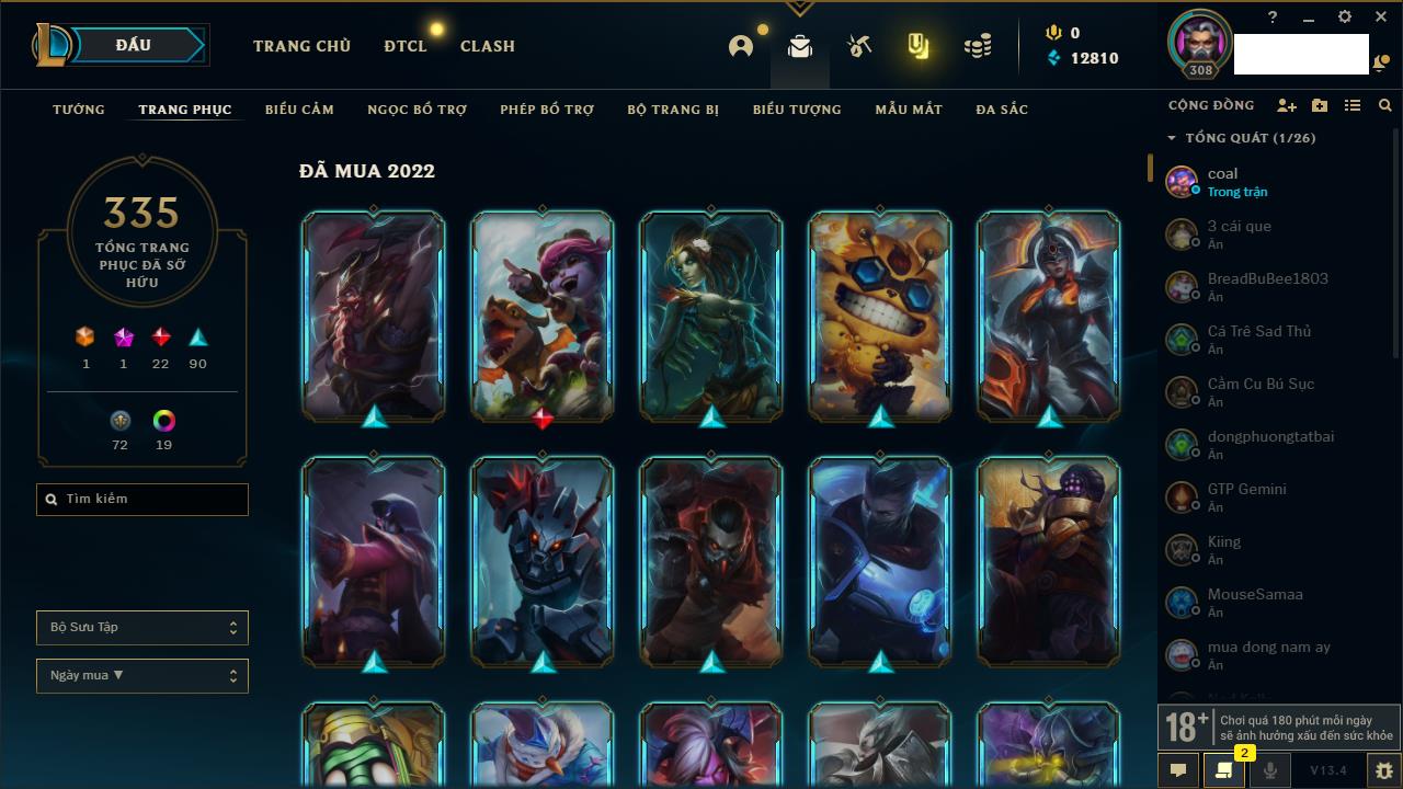 Rank Đơn: Chưa RankKhung: Chưa có khungTướng: 170 - Còn 42144 THXTrang Phục: 82Rank ĐTCL: Chưa RankLinh Thú: 130