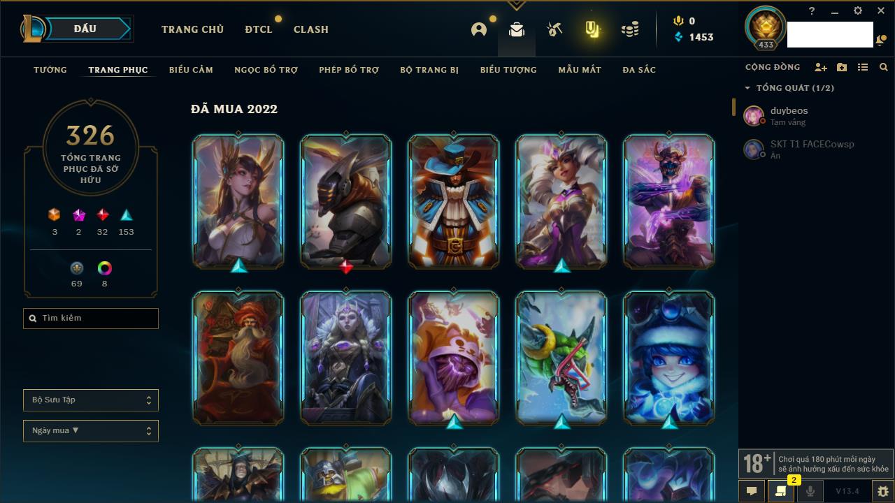 Rank Đơn: Chưa RankKhung: Chưa có khungTướng: 170 - Còn 42144 THXTrang Phục: 82Rank ĐTCL: Chưa RankLinh Thú: 130