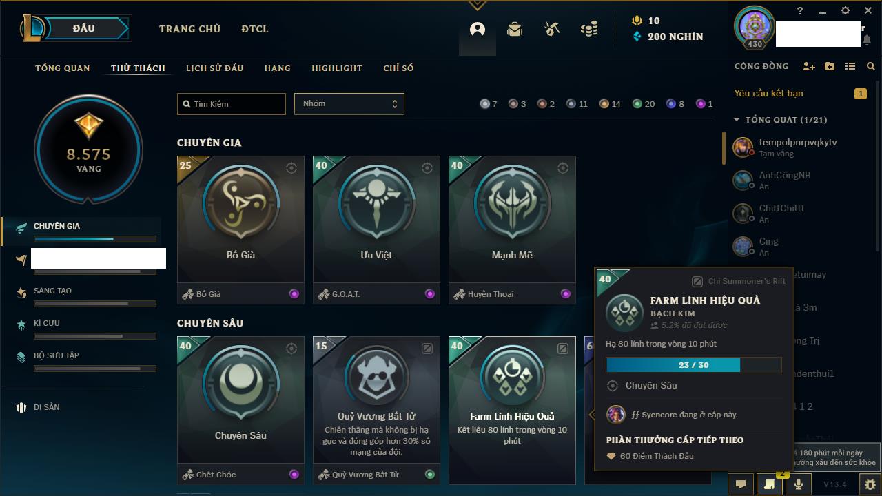 Rank Đơn: Sắt IVKhung: SắtTướng: 171 - Còn 231744 THXTrang Phục: 376Rank ĐTCL: Bạch Kim IILinh Thú: 120