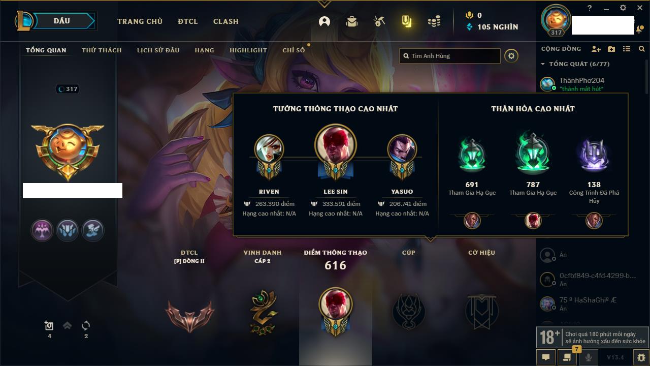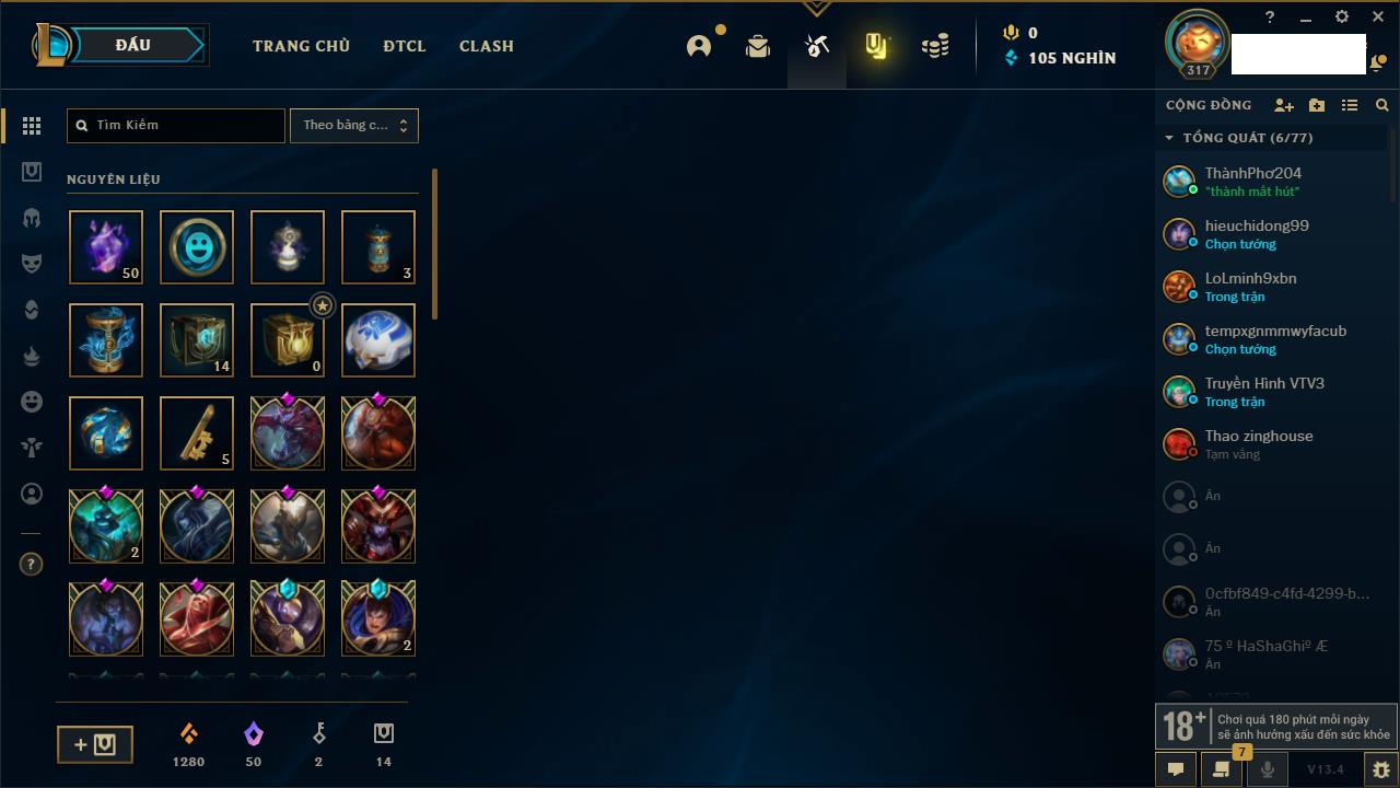 Rank Đơn: Chưa rank mùa nào Khung: Chưa có khung Tướng: 0 - Còn 2000 THX Trang Phục: 0 Rank ĐTCL: Chưa Rank Linh Thú: 14