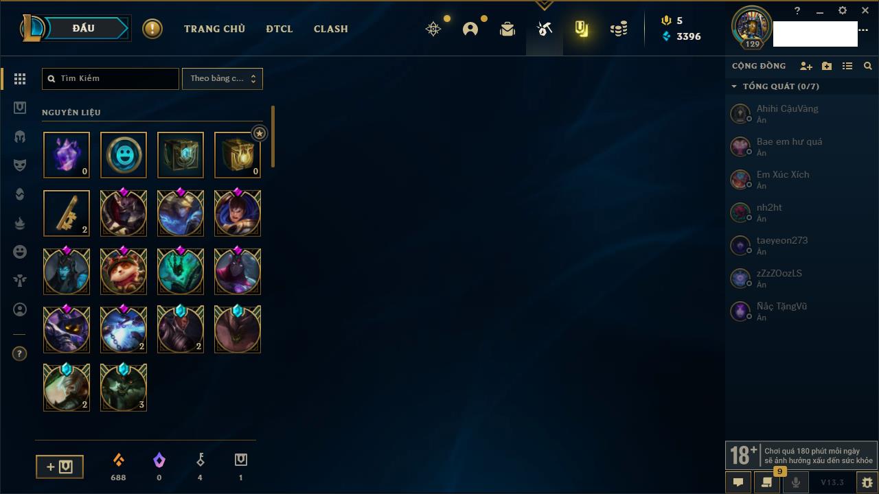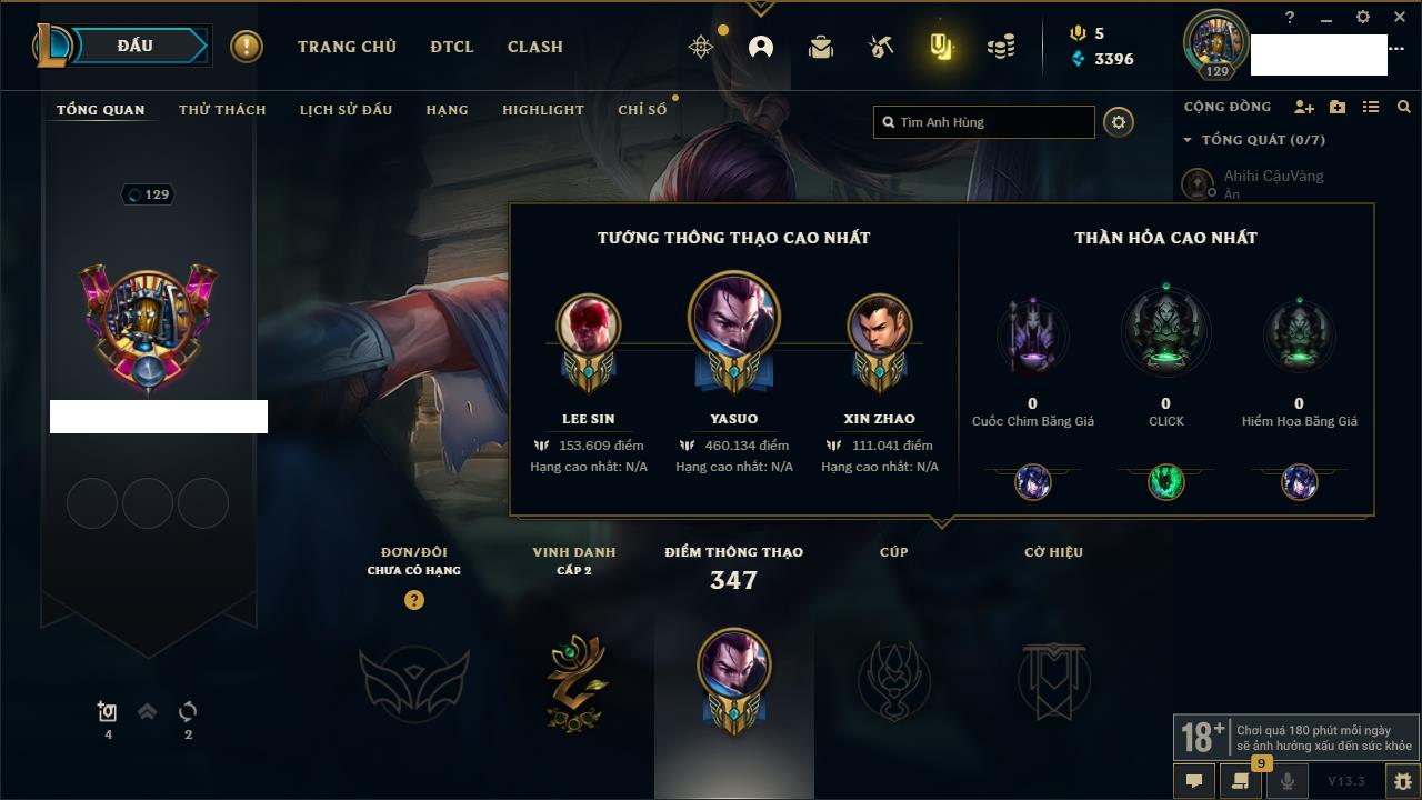 Rank Đơn: Chưa rank mùa nào Khung: Chưa có khung Tướng: 0 - Còn 2000 THX Trang Phục: 0 Rank ĐTCL: Chưa Rank Linh Thú: 14