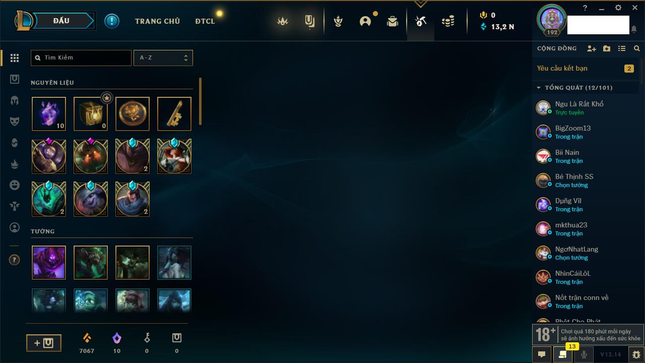 Rank Đơn: Chưa rank mùa nàoKhung: Chưa có khungTướng: 0 - Còn 2000 THXTrang Phục: 0Rank ĐTCL: Chưa RankLinh Thú: 14