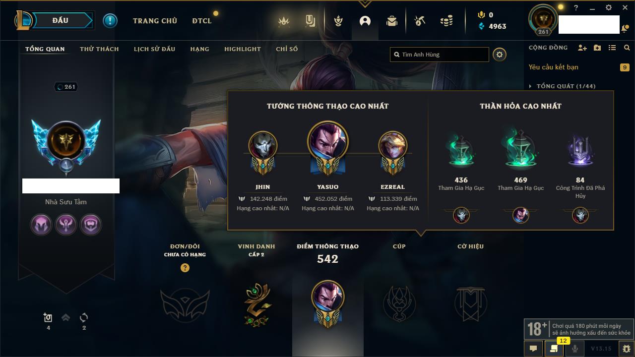 - Cấp 527 - 180,925 IP - Yasuo 634,686 Thông Thạo