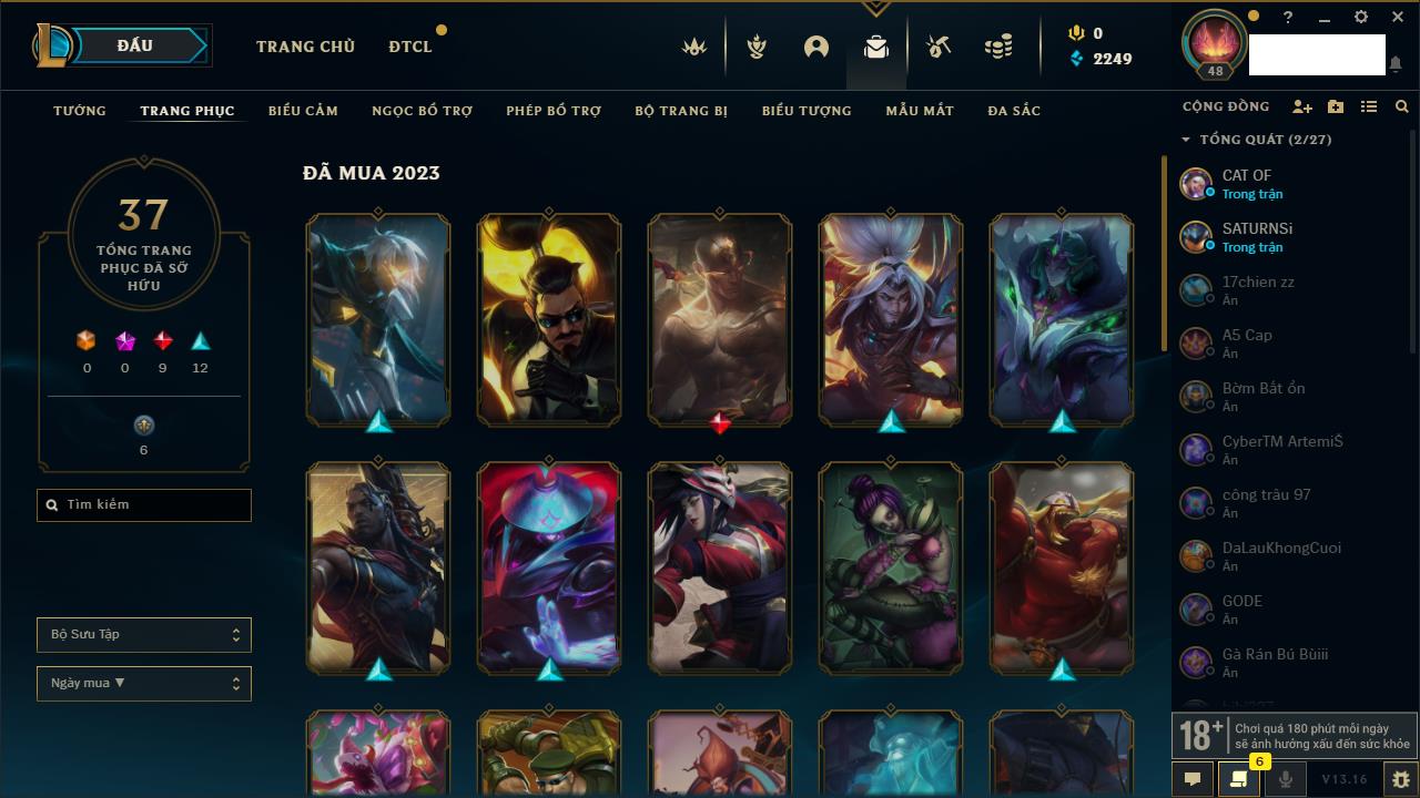 Rank Đơn: Chưa rank mùa nàoKhung: Chưa có khungTướng: 12 - Còn 430 THXTrang Phục: 1Rank ĐTCL: Chưa RankLinh Thú: 1