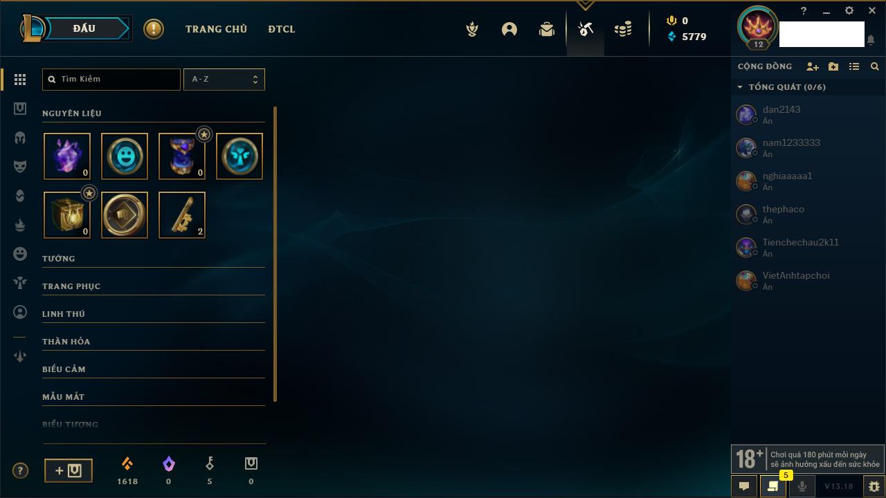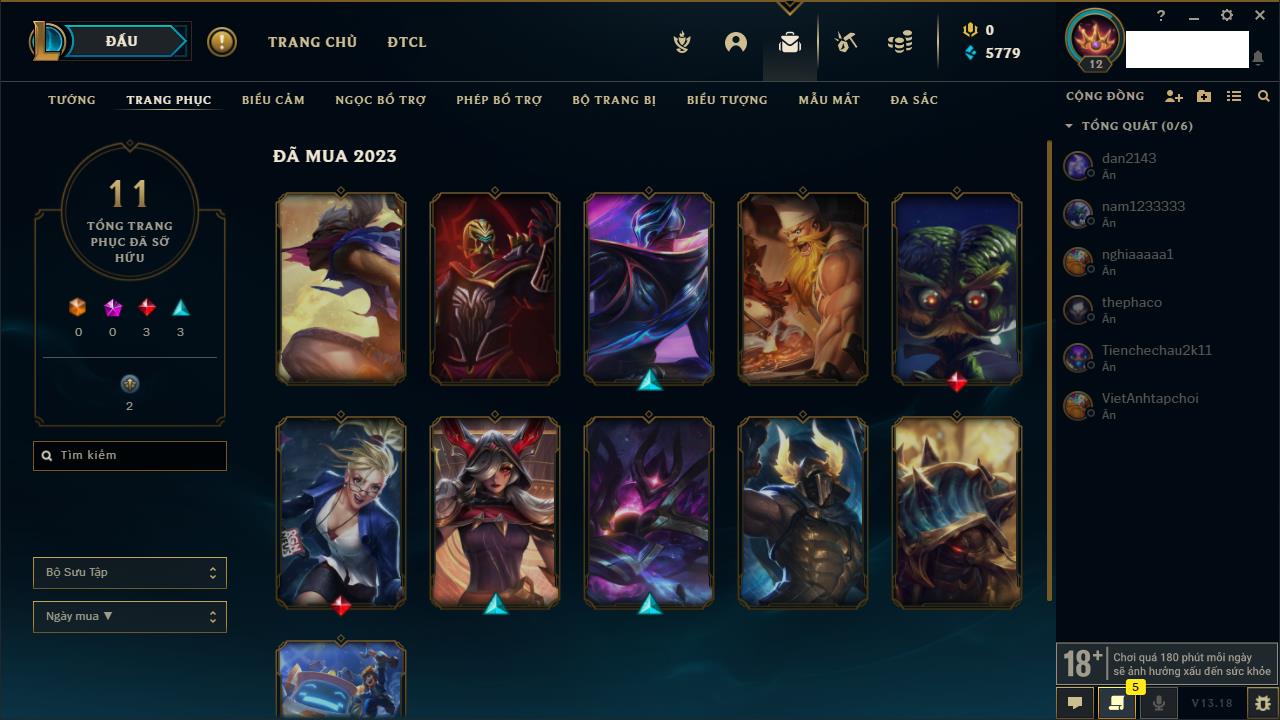 Rank Đơn: Chưa rank mùa nàoKhung: Chưa có khungTướng: 159 - Còn 15030 THXTrang Phục: 5Rank ĐTCL: Chưa RankLinh Thú: 51