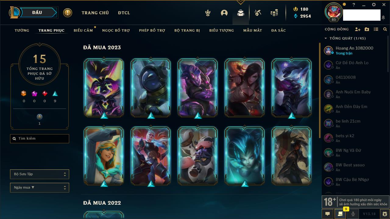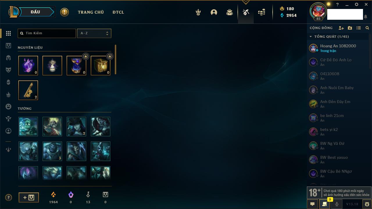 Rank Đơn: Chưa rank mùa nàoKhung: Chưa có khungTướng: 158 - Còn 6970 THXTrang Phục: 32Rank ĐTCL: Chưa RankLinh Thú: 24