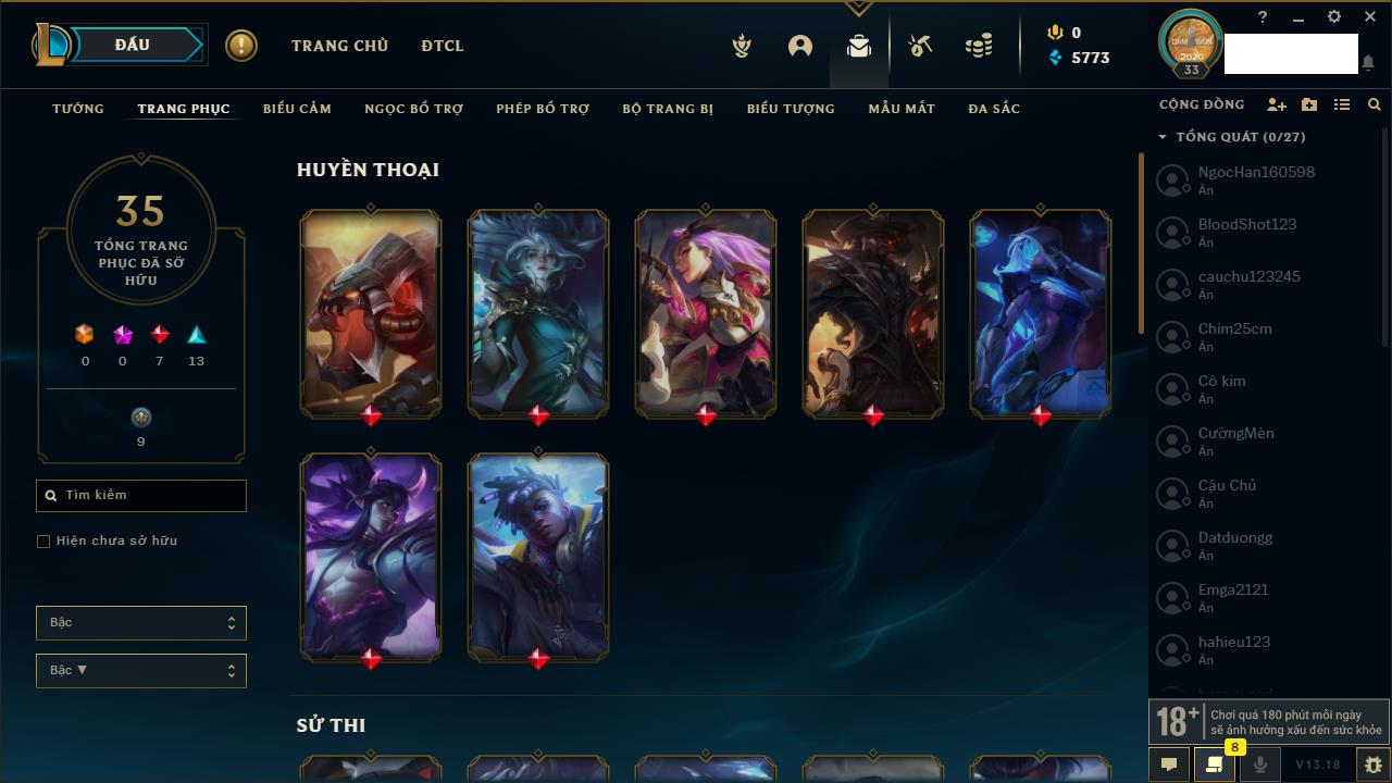 Rank Đơn: Chưa rank mùa nàoKhung: Chưa có khungTướng: 158 - Còn 6970 THXTrang Phục: 32Rank ĐTCL: Chưa RankLinh Thú: 24