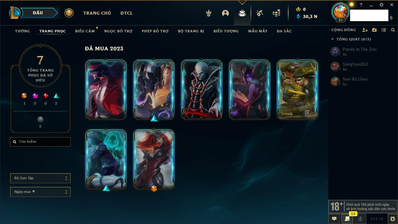 Rank Đơn: Chưa rank mùa nàoKhung: Chưa có khungTướng: 157 - Còn 2079 THXTrang Phục: 11Rank ĐTCL: Chưa RankLinh Thú: 70