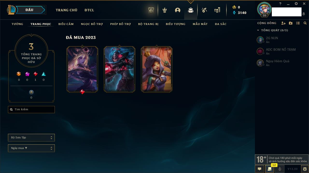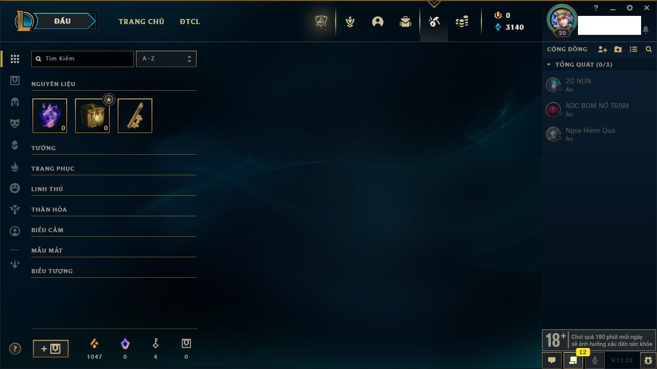 Rank Đơn: Chưa rank mùa nàoKhung: Chưa có khungTướng: 0 - Còn 1400 THXTrang Phục: 0Rank ĐTCL: Chưa RankLinh Thú: 40