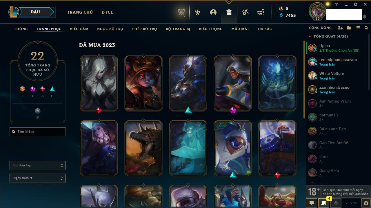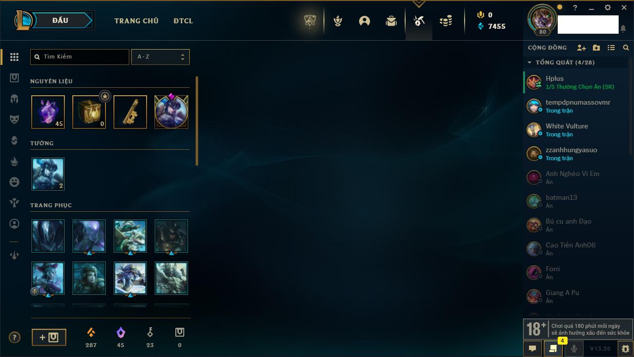 Rank Đơn: Chưa rank mùa nàoKhung: Chưa có khungTướng: 158 - Còn 6970 THXTrang Phục: 32Rank ĐTCL: Chưa RankLinh Thú: 24