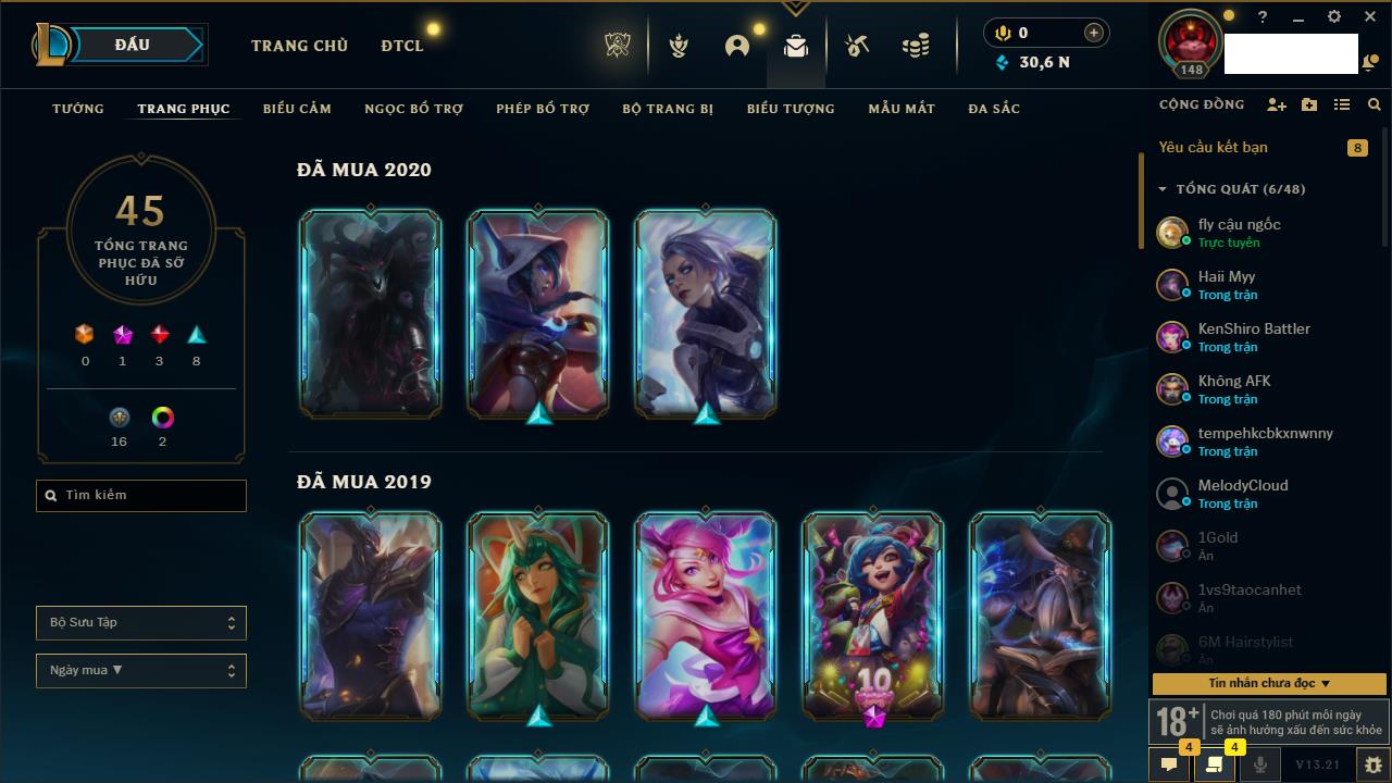 Rank Đơn: Chưa rank mùa nàoKhung: Chưa có khungTướng: 157 - Còn 2079 THXTrang Phục: 11Rank ĐTCL: Chưa RankLinh Thú: 70