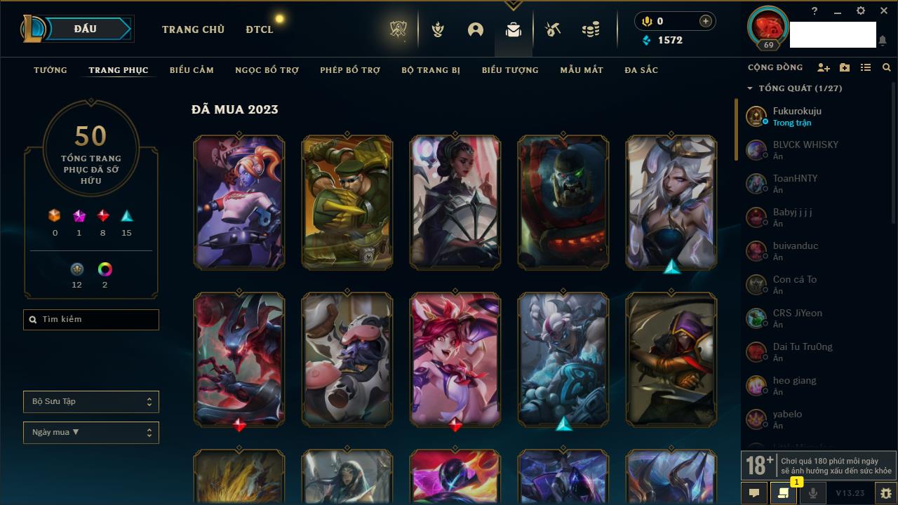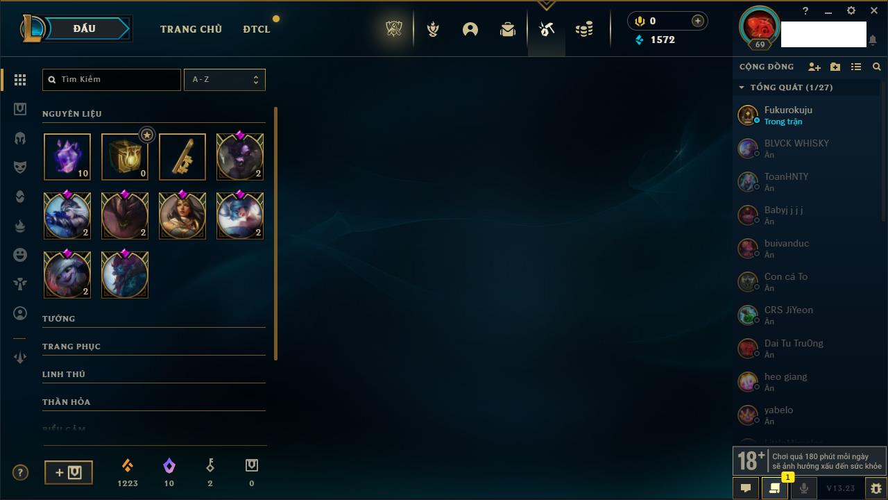 Rank Đơn: Chưa rank mùa nàoKhung: Chưa có khungTướng: 158 - Còn 6970 THXTrang Phục: 32Rank ĐTCL: Chưa RankLinh Thú: 24