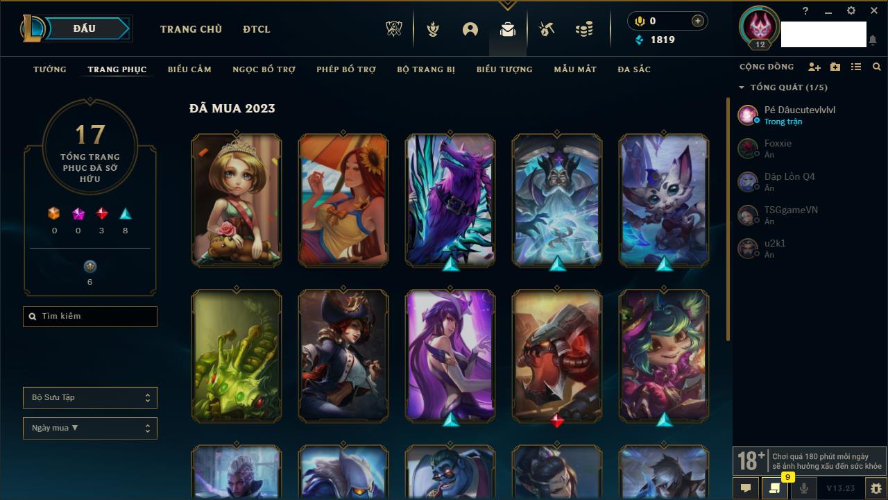 Rank Đơn: Chưa rank mùa nàoKhung: Chưa có khungTướng: 161 - Còn 11380 THXTrang Phục: 13Rank ĐTCL: Chưa RankLinh Thú: 74