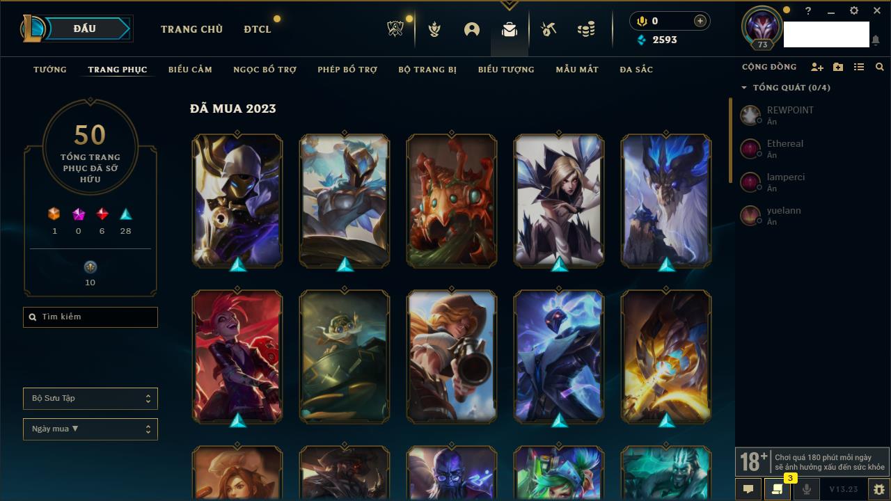 Rank Đơn: Chưa rank mùa nàoKhung: Chưa có khungTướng: 158 - Còn 6970 THXTrang Phục: 32Rank ĐTCL: Chưa RankLinh Thú: 24