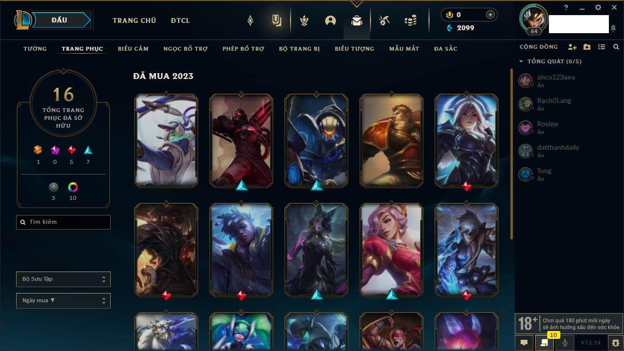 Rank Đơn: Chưa rank mùa nàoKhung: Chưa có khungTướng: 158 - Còn 6970 THXTrang Phục: 32Rank ĐTCL: Chưa RankLinh Thú: 24