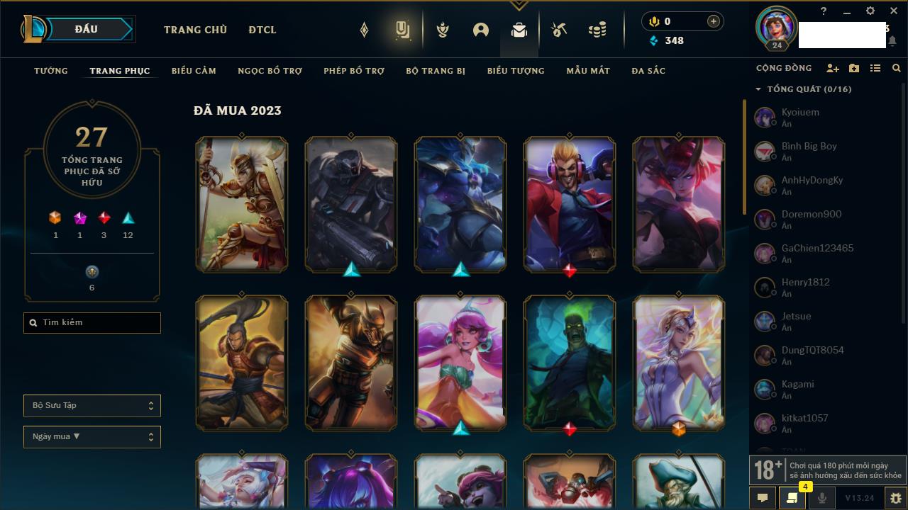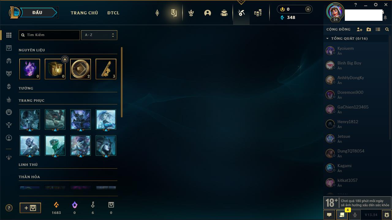 Rank Đơn: Chưa rank mùa nàoKhung: Chưa có khungTướng: 158 - Còn 6970 THXTrang Phục: 32Rank ĐTCL: Chưa RankLinh Thú: 24