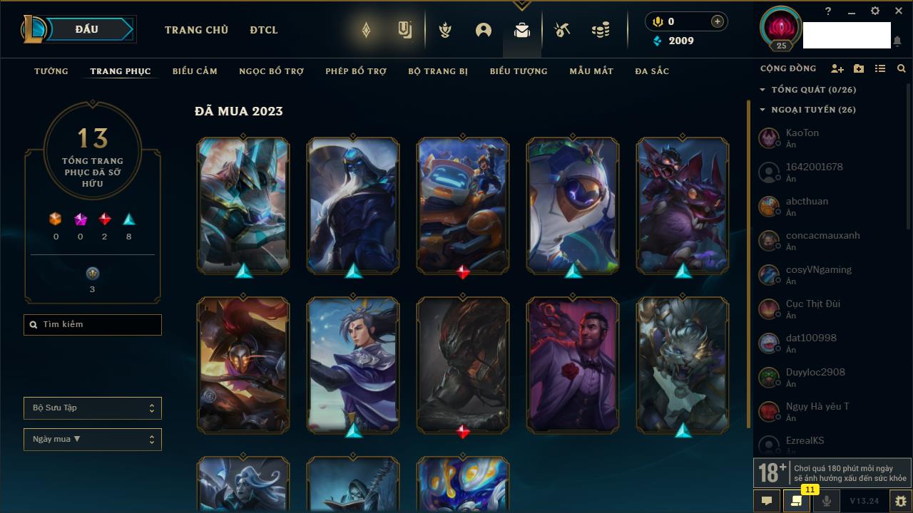 Rank Đơn: Chưa rank mùa nàoKhung: Chưa có khungTướng: 158 - Còn 6970 THXTrang Phục: 32Rank ĐTCL: Chưa RankLinh Thú: 24
