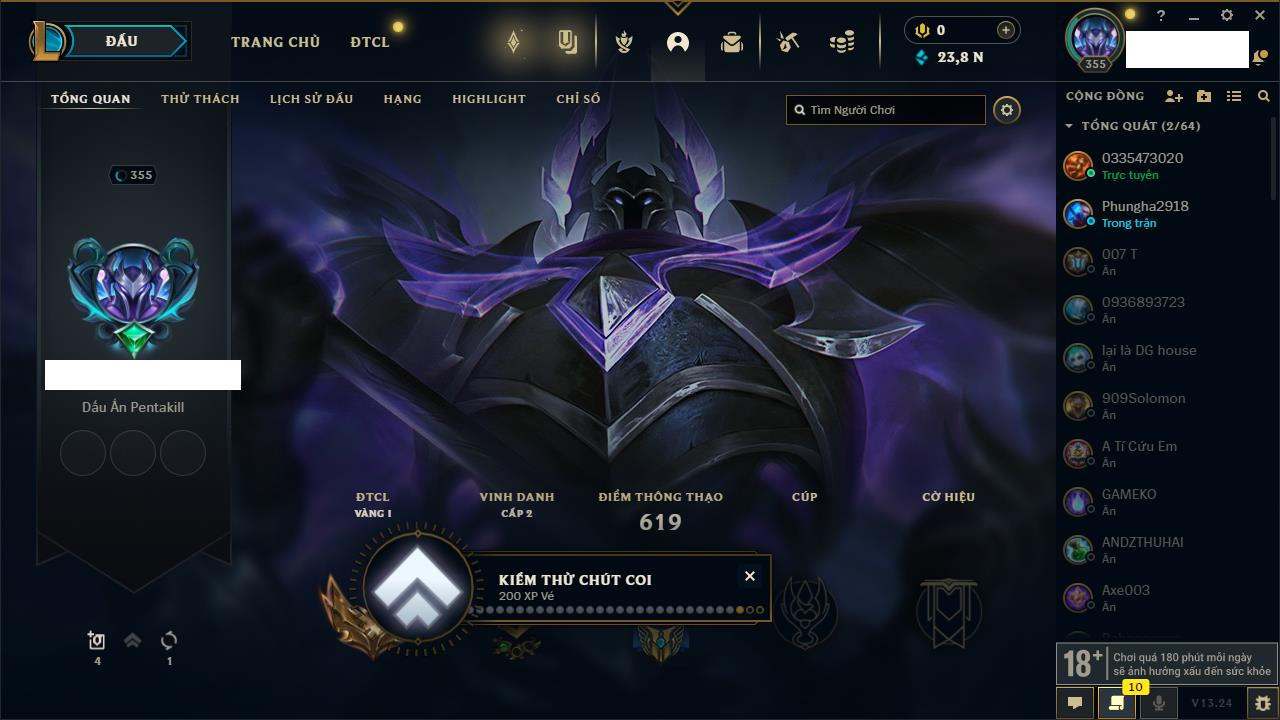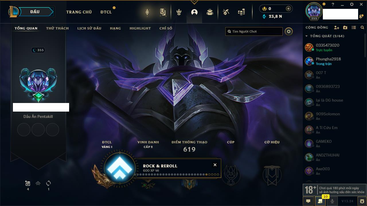 Acc #238664: Khung Chưa có khung - Rank Chưa Rank