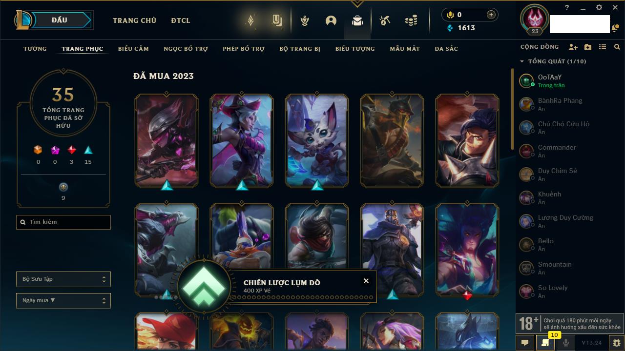 Rank Đơn: Chưa rank mùa nàoKhung: Chưa có khungTướng: 158 - Còn 6970 THXTrang Phục: 32Rank ĐTCL: Chưa RankLinh Thú: 24