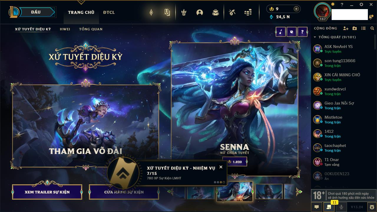Rank Đơn: Chưa RankKhung: Chưa có khungTướng: 144 - Còn 7530 THXTrang Phục: 75Rank ĐTCL: Chưa RankLinh Thú: 9