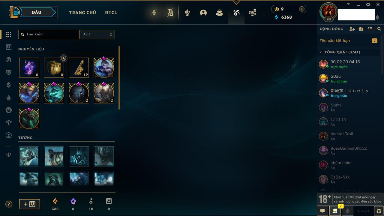 Rank Đơn: Chưa rank mùa nàoKhung: Chưa có khungTướng: 12 - Còn 3853 THXTrang Phục: 2Rank ĐTCL: Chưa RankLinh Thú: 30