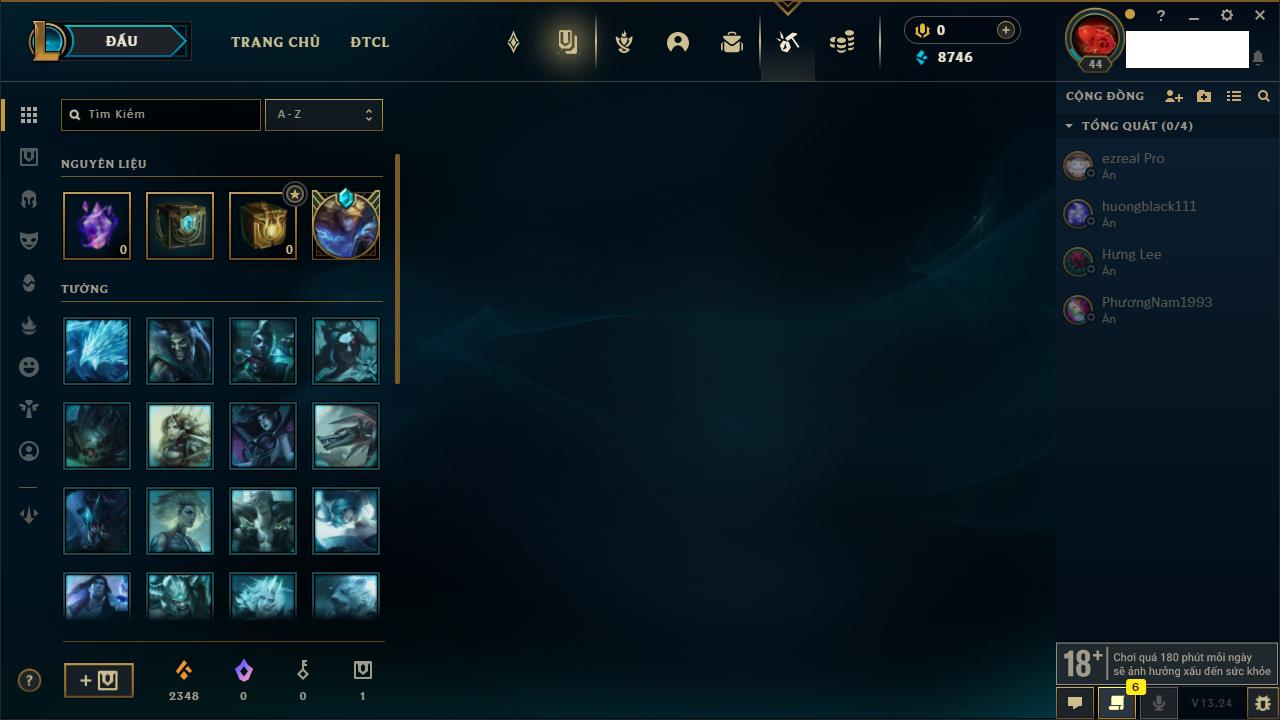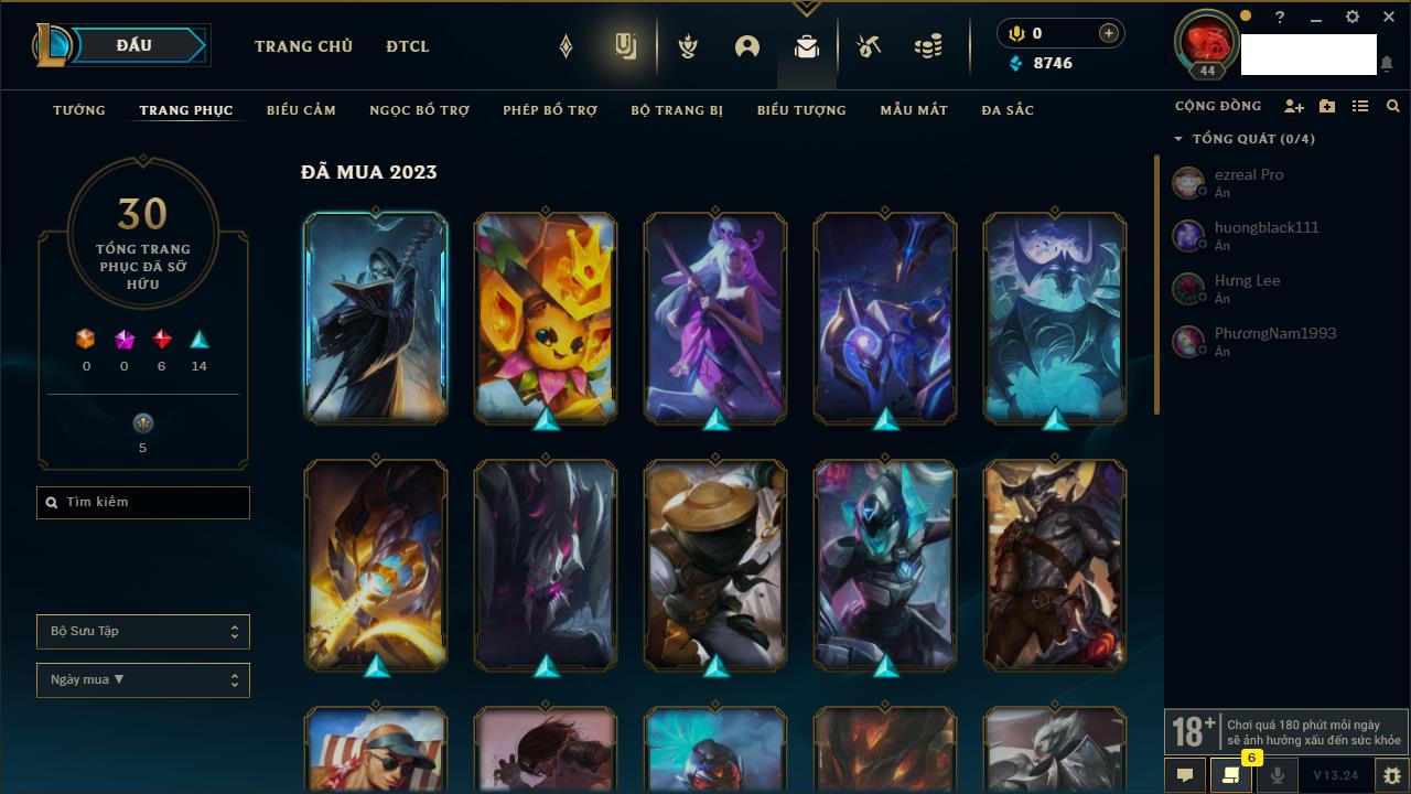 Rank Đơn: Chưa rank mùa nàoKhung: Chưa có khungTướng: 158 - Còn 6970 THXTrang Phục: 32Rank ĐTCL: Chưa RankLinh Thú: 24