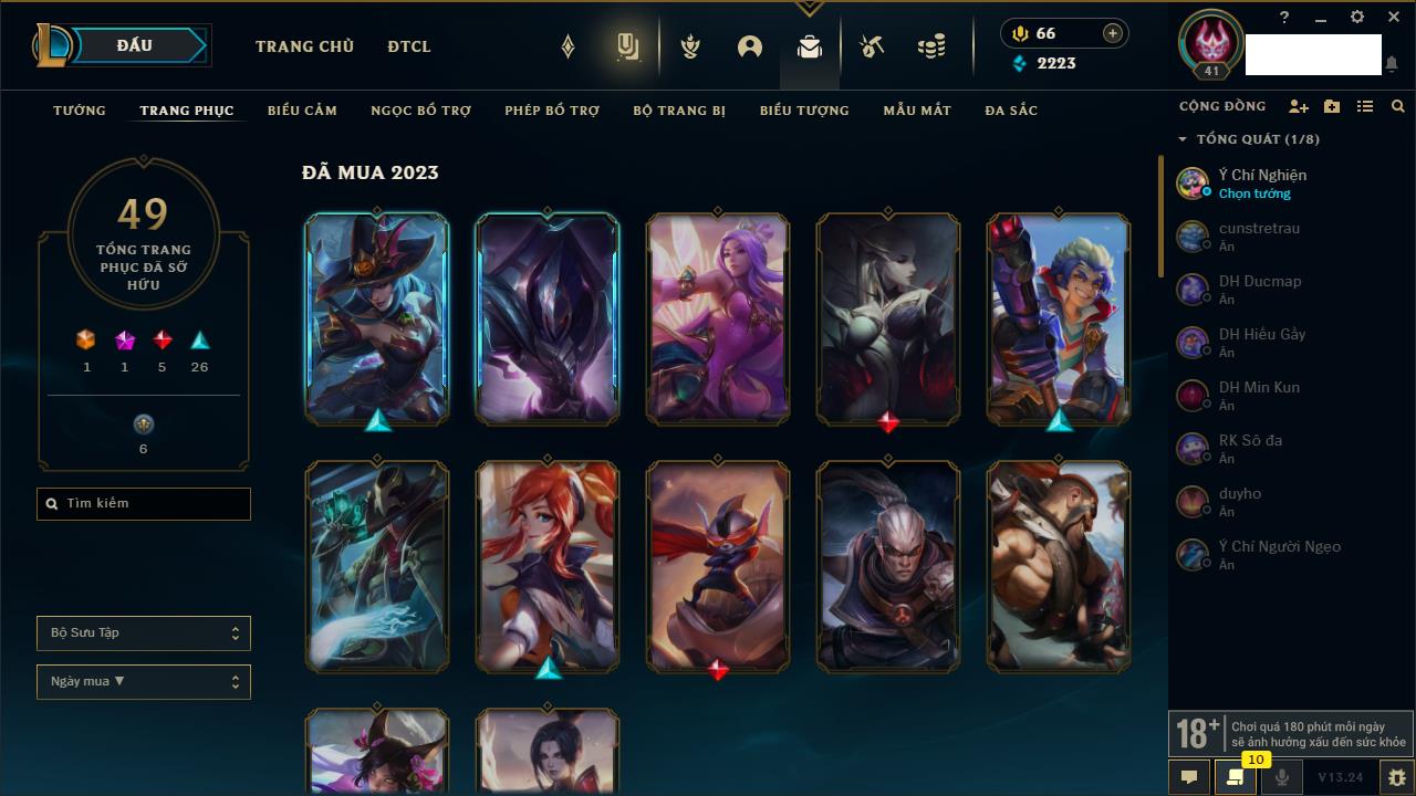 Rank Đơn: Chưa rank mùa nàoKhung: Chưa có khungTướng: 157 - Còn 2223 THXTrang Phục: 49Rank ĐTCL: Chưa RankLinh Thú: 126