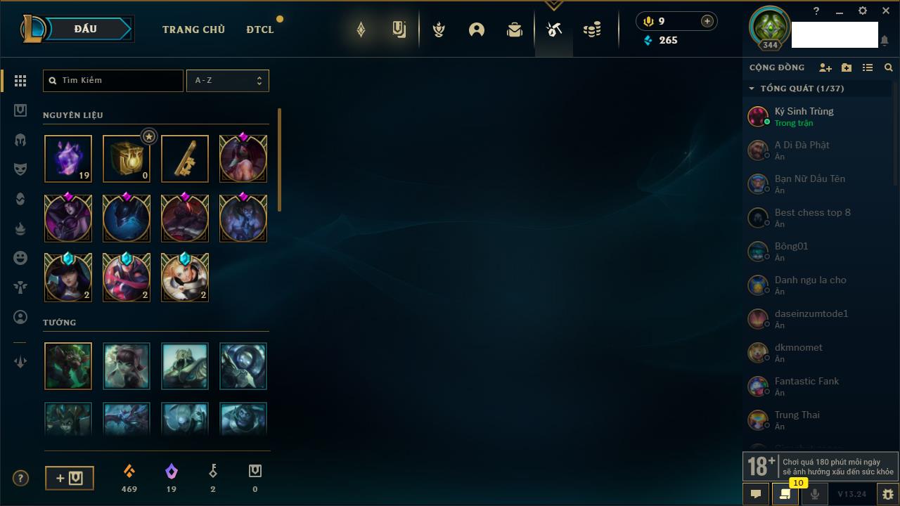 Rank Đơn: Chưa rank mùa nào Khung: Chưa có khung Tướng: 0 - Còn 2000 THX Trang Phục: 0 Rank ĐTCL: Chưa Rank Linh Thú: 14