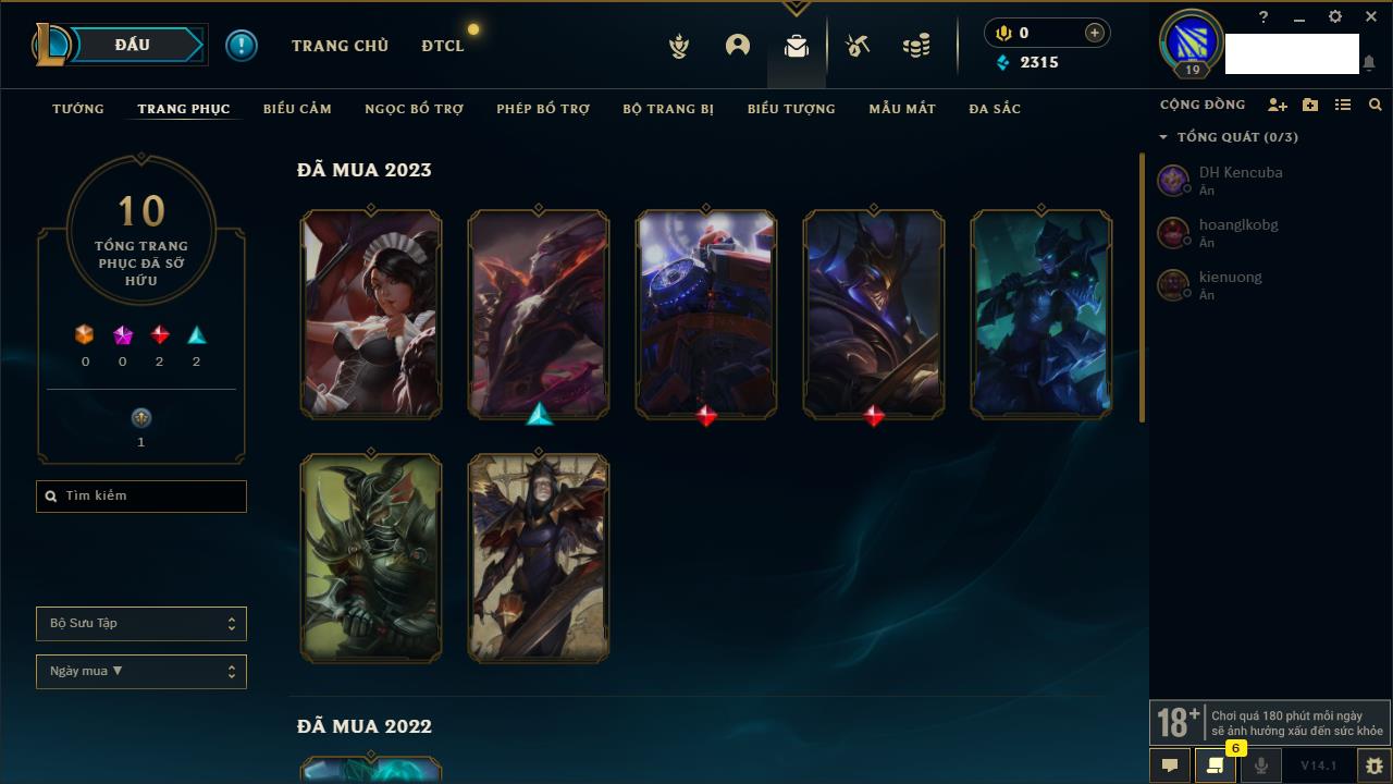 Rank Đơn: Chưa rank mùa nàoKhung: Chưa có khungTướng: 147 - Còn 8700 THXTrang Phục: 0Rank ĐTCL: Chưa RankLinh Thú: 1