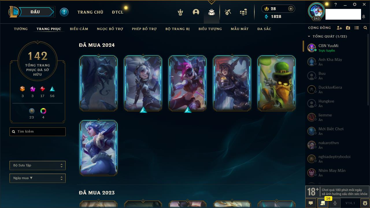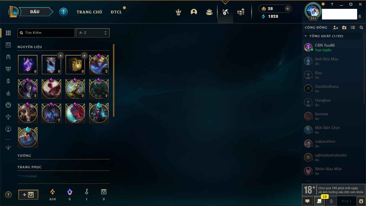 Rank Đơn: Đồng IIKhung: Chưa có khungTướng: 153 - Còn 32832 THXTrang Phục: 66Rank ĐTCL: Chưa RankLinh Thú: 7