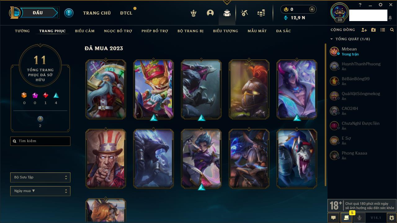 Rank Đơn: Chưa rank mùa nàoKhung: Chưa có khungTướng: 162 - Còn 12965 THXTrang Phục: 11Rank ĐTCL: Chưa RankLinh Thú: 58