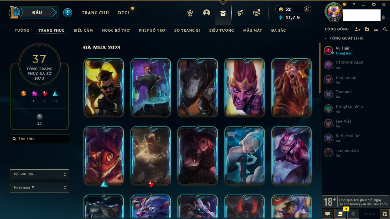 Rank Đơn: Chưa rank mùa nào Khung: Chưa có khung Tướng: 157 - Còn 11111 THX Trang Phục: 5 Rank ĐTCL: Chưa Rank Linh Thú: 49