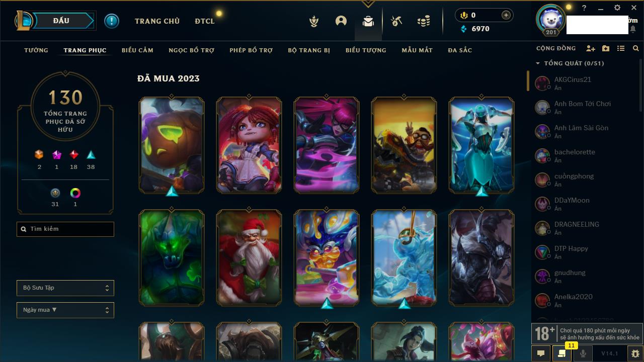 Rank Đơn: Chưa Rank Khung: Chưa có khung Tướng: 159 - Còn 6080 THX Trang Phục: 136 Rank ĐTCL: Chưa Rank Linh Thú: 29