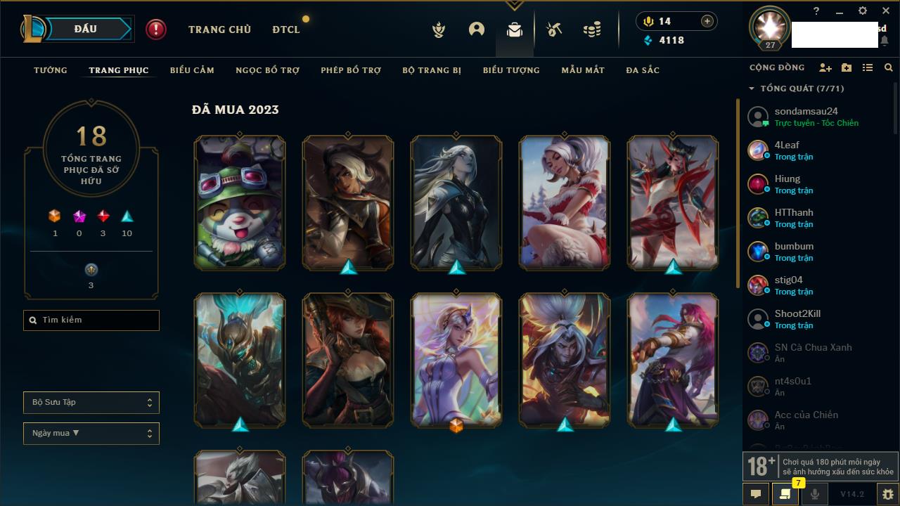 Rank Đơn: Chưa rank mùa nàoKhung: Chưa có khungTướng: 157 - Còn 2079 THXTrang Phục: 11Rank ĐTCL: Chưa RankLinh Thú: 70